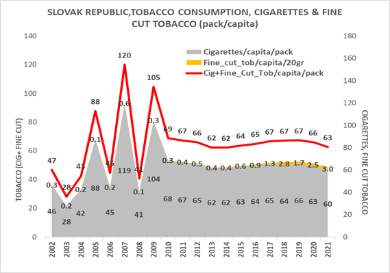 Figure 1 Cigarette and Fine Cut Tobacco Consumption in Slovakia 2002-2021